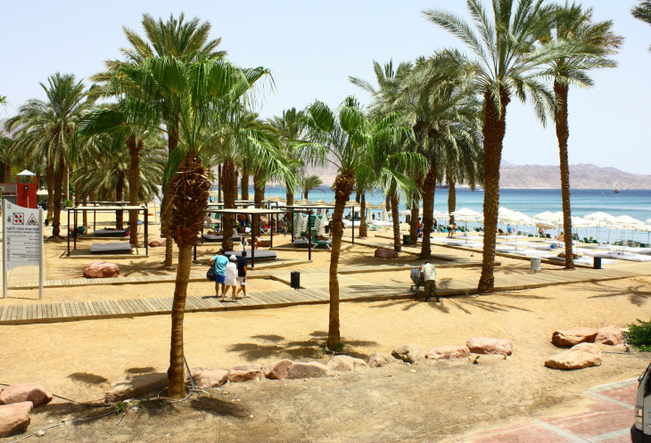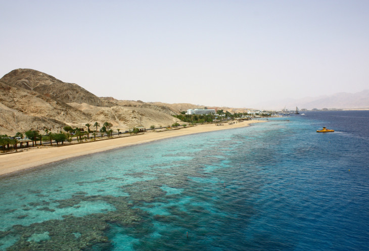 Коралловый берег растянулся на несколько километров и упирается в КПП на границе с Египтом. Сразу за шлагбаумом уже начинается египетский курорт Таба. На коралловом берену есть несколько пляжей, на которых можно как просто позагорать и покупаться, так и поизучать подводную флору и фауну: самостоятельно с маской и ластами или с аквалангом под руководством инструктора.