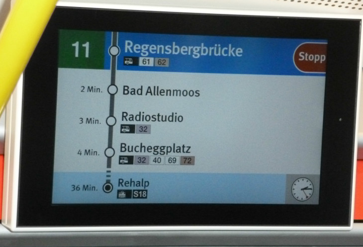 Все-таки не поверив, мы сразу убедились в этом, увидев расписание движения трамвая, а внутри экранчик с указанием времени до остановок.