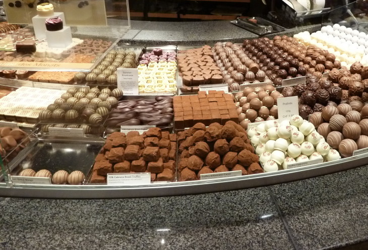 Найти их не сложно, по аромату, а уж когда попадаешь внутрь… Полуметровые разномастные плиты громоздятся на витрине, мило упакованные фигурки, сверточки, коробочки поглядывают с витрин, а трюфели…