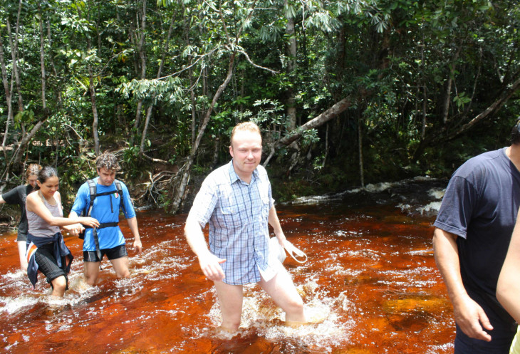 В конце пути Хосе Карлос немного изменил маршрут по лесу, и нам пришлось переходить неглубокую (по колено), но бурную речку. Цвет воды в этой реке также был красный – где еще такое увидишь?