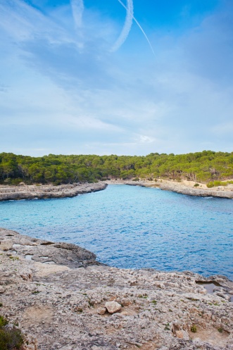 Жили мы как раз на северо-востоке, поэтому для нас этот маршрут стал самым коротким. Но даже, если Вы остановились вблизи столицы острова, добраться сюда не составит труда. Необходимо доехать до города Arta и повернуть по направлению на Capdepera. Практически сразу после выезда из города Вы увидите поворот налево на бухту Cala Torta. На самом деле бухты три: Cala Torta, Cala Estreta, Cala Mitjana. Дорога сюда идет не самая хорошая (на фоне остальных трасс Майорки). Эти пляжи считаются дикими и необорудованными, туристы здесь, конечно, есть, но в значительно меньшем количестве, чем в более популярных местах. На пляже Cala Torta есть маленькое кафе. Но мы выбрали для отдыха Cala Mitjana. От одной до другой бухты можно дойти пешком. Погода была не солнечная, поэтому фотографии не передают всей прелести местности.