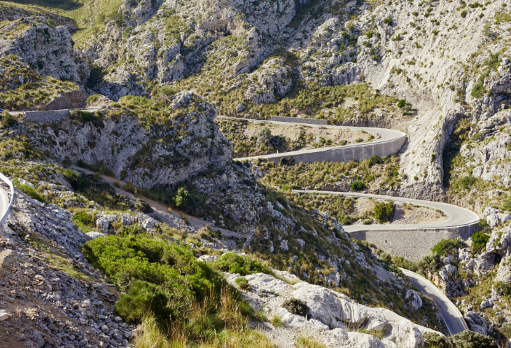 Второй пункт назначения – бухта Sa Colobra. Место сильно распиарено, сюда ходят туристические автобусы, поэтому не ждите тишины и покоя. Но отправиться сюда обязательно стоит. Здесь Вы наконец-то познакомитесь с горами Трамунтана. Хоть они и не высокие, серпантины утомят любого. Дорога была построена в первой половине 20-ого века и до сих поддерживается в прекрасном состоянии. Именно здесь находится знаменитая «петля галстука». Вместо того, что пустить дорогу на 90 градусов налево, архитектор направил ее направо с поворотом на 270 градусов и построил маленькую эстакаду.