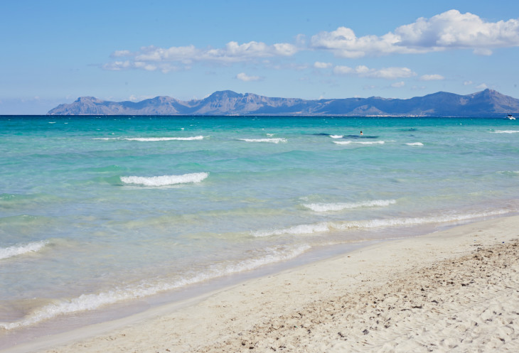 Platja de Muro – один из самых известных пляжей Майорки – узкая полоска светлого песка, растянувшаяся на несколько километров. Часть побережья застроена дорогими отелями, а к другой прилегает заповедник с сосновым лесом (Platja Es Comu). Советую остановиться около входа в заповедник. Парковки там нет, но с другой стороны дороги Вы заметите припаркованные авто прямо на обочине. Platja de Muro – одно из немногих мест на Майорке, которое произвело на меня впечатление. Прогулка по сосновому лесу и выход к пляжу с белым песком и чистейшей водой. Дно пологое, поэтому можно смело приезжать с детьми. Из минусов – незначительно количество нудистов и ветер с моря во второй половине дня (осенью).