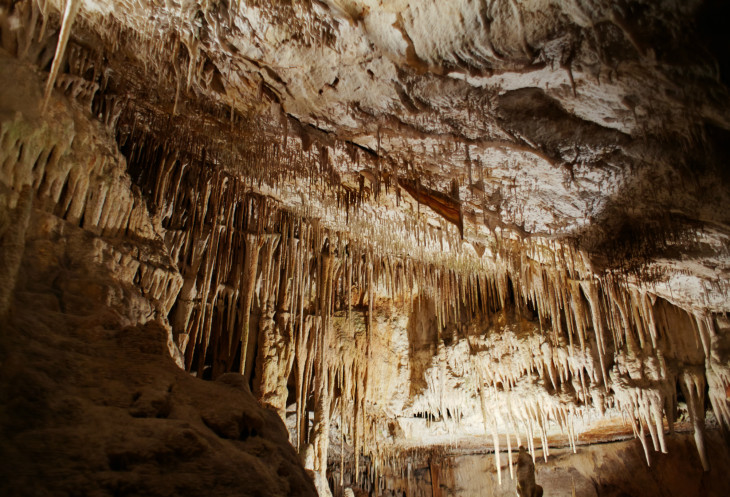 И последним пунктом будет посещение пещер. Здесь предлагается два варианта на выбор: либо пещеры Arta, либо более популярные Drach (в Puerto Cristo). Мы отправились во вторую пещеру, в которой расположено одно из самый больших в Европе подземных озер – озеро Мартель. Признаюсь, не сильно впечатлило. Маршрут короткий, людей безумное количество, а так называемый «концерт» - это несколько коротеньких композиций. И никакой светомузыки во время концерта, про которую многие пишут. Все происходит в абсолютной темноте. Хотя акустика, конечно, прекрасная. Отличительной особенностью является температура пещеры – 21С, что довольно жарко. А еще весь ее свод покрыт маленькими сталактитами, как иголочки у ежика. Тем, кто посещал пещеры в других местах, эта может показаться не самой интересной.