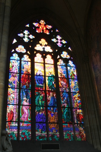 Венчает Пражский град Собор Святого Вита – самая большая и важная церковь в Чешской республике, где похоронены святые, короли, принцы и императоры Богемии. На мой взгляд, на осмотр его внешнего фасада и внутреннего убранства просто необходимо потратить время, ибо это творение потрясает, впечатляет, вызывает непонятный трепет и восхищение. В душе происходит ровно то же, что при виде Саграды Фамилии в Барселоне – смятение чувств. Чего стоят одни витражи стрельчатых окон – они пронизывают храм теплом и светом, и кажется, что он дышит и пульсирует вместе со стуком твоего сердца, бьющегося от мощи и величия готической архитектуры.