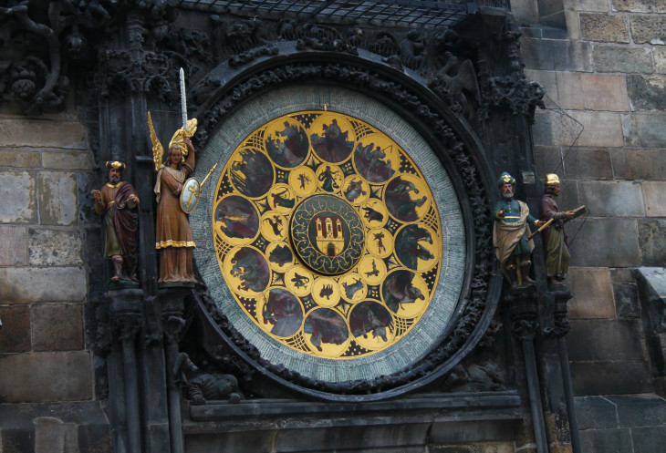 Бой астрономических часов, сопровождаемый мини-спектаклем движущихся фигурок, мы смотрели несколько раз в разное время суток. Свои ощущения от этого фантастического действа я разве что смогу сравнить с впечатлениями от спектакля в театре марионеток, где мы смотрели оперу «Дон Жуан».