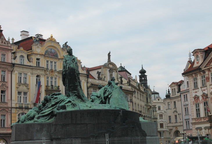 Так, совсем незаметно для себя, мы оказывались Староместской площади с её грандиозными творениями - ратушей с часами, Тынским храмом и памятником Яну Гусу