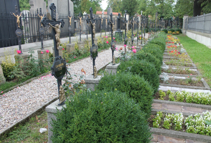 Осмотр паркового комплекса мы начали с Казематов, затем, поднявшись по алее, вышли на смотровую площадку, осмотрели Летнюю сцену и Галерею, полюбовались на Прагу через узкие окна крепостной стены, спустились в Готический грот, где уютно расположился музей истории Вышеграда, а затем посетили Вышеградское кладбище, где нашли могилы известных людей.