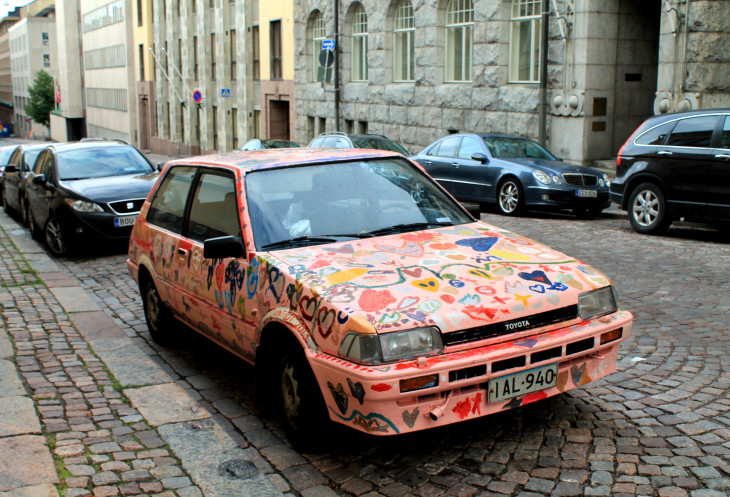 разглядываем разукрашенную машинку,