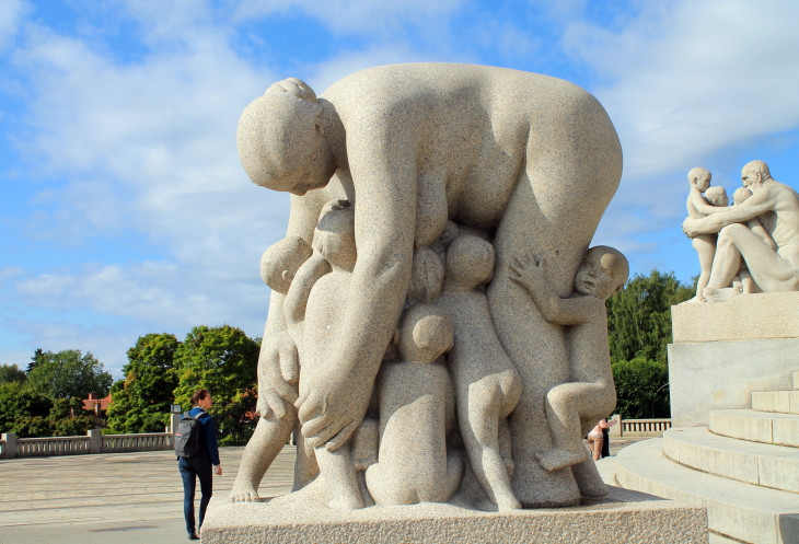 Еще когда готовились к поездке, просматривая фото городов, как-то не увидел снимков в Осло, на которых задержался бы взгляд, и пришла бы мысль: «Вот это я хочу увидеть!». Вполне современный обычный город. Была даже мысль, а не проехать ли нам мимо, но надо было поставить галочку – были! И не получилось бы без Осло четырех столиц. Вот мы и решили все же заехать в городе в парк Скульптур Вигеланда,
