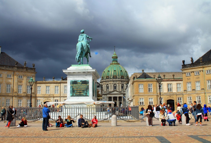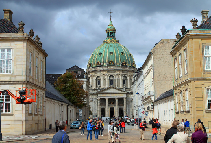 Рассматриваем памятник королю Фредерику VII, церковь Фредерика с великолепным куполом, но опять очень скромную внутри,