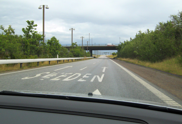 Выезжаем по автодороге в сторону шведского города Мальмё.