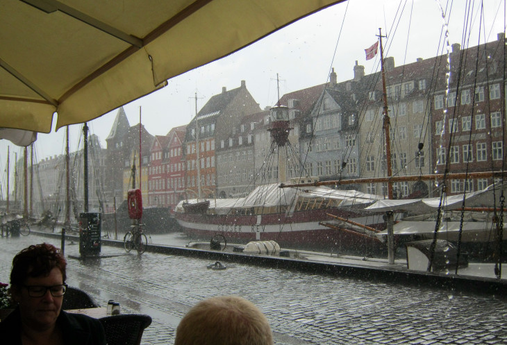 Пережидаем ливень в уличном кафе на набережной, где, не теряя времени, лакомимся датским мороженным. Ничего особенного.
