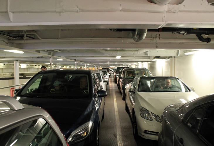 В два часа дня забираем из прокатной конторы заранее забронированный автомобиль, забираем вещи из отеля и едем в очередь на погрузку на паром, который отвезет нас по Балтийскому морю в Стокгольм.