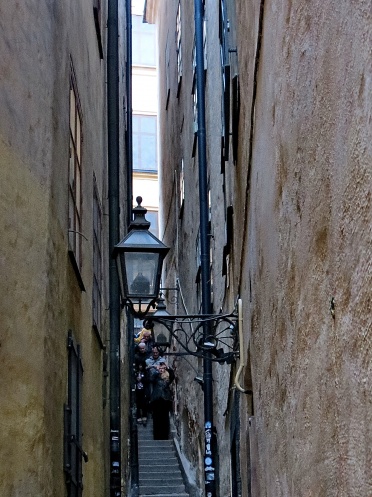 Самая узкая улица Стокгольма (ширина 90 см). Не улица, конечно – переулок, да еще с лестницей. Подобное встречалось и в Праге, и в Венеции…