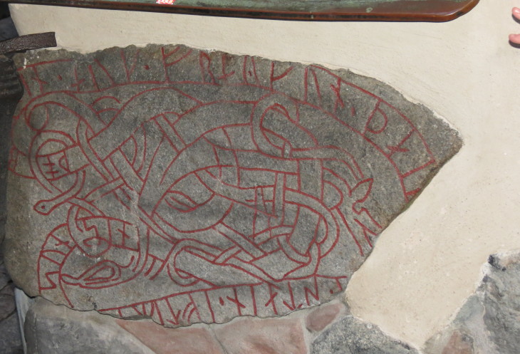 Каждая новая экскурсия с новым гидом открывает новые места. На этот раз нам показали «рунический камень» - здоровый булыжник, оказавшийся вмонтированным в фундамент дома. Но еще до того, как это произошло, на камень кто-то нанес древние скандинавские знаки-руны, тем самым превратив камень в историческую ценность. Ну а попав в основание дома, камень стал недвижимостью на веки вечные…