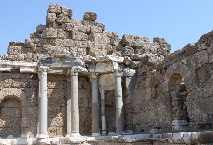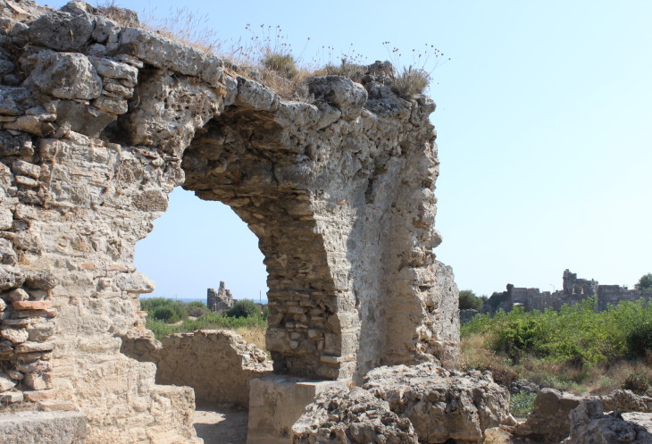 Еще в 2012 году, в первую нашу поездку, когда я о Турции имела весьма посредственное представление, посмотрела район, где мы будем пребывать, увидела, что там есть какие-то развалины, посмотрела фотографии... Но тогда бОльшую роль, конечно, сыграло наличие песчаного пляжа и хорошие отзывы об отеле. Честно скажу, что в 2012 году до Сиде мы не добрались. Первый год были-то совсем ничего в стране - 8 дней, из них два ушли на Каппадокию и два - день прилета и вылета. Поэтому, решив в 2013 вернуться сюда же, не стали заморачиваться посещением древних развалин...