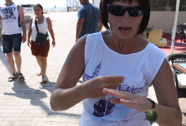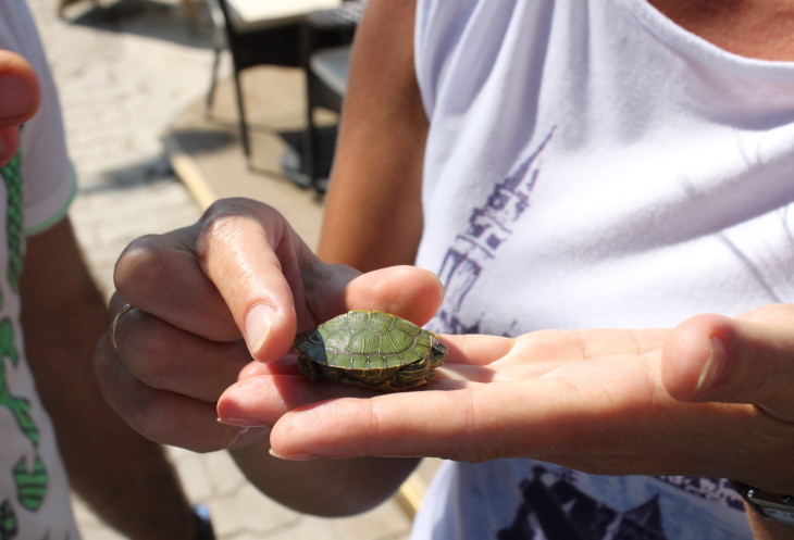 Заговаривают с нами на немецком. Отвечаю я - на турцком! Отстают! В одном месте мне дали подержать черепашонка. Я не просила, просто турки такие лапочки бывают! А я не знала, чтоэти мелкие такие шустрики, побежал, как спринтер, по моей ладошке и слетел на асфальт.. Не разбился. слава Всевышнему!