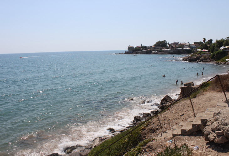 ...20 августа 2013год. Решили до Сиде прогуляться вдоль набережной по променаду. Идти всего 4 км по очень приятному, оживленнуму побережью. Нарядные отдыхающие, турки, совсем даже не навязчивые, а дружелюбно предлагающие посетить их заведения и отведать турецкие явства. Шикарные и не очень отели, живая музыка, доносящаяся из совсех "крутых" пятерок и "Бара бара бери бери" из среднестатестических отелей.... Атмосфера вечного праздника! По дороге попили свежевыжатый сок, муж в Турции его пробует первый раз, я уже пила в Стамбуле и в Кемере. Где-то не доходя километра полтора до города начинают попадаться участки с разрушенными стенами, а пляжи из песочных постепенно сменяются каменными плитами, булыжниками, очень напоминающие почти исчезнувшие рукотворные прибрежные сооружения.