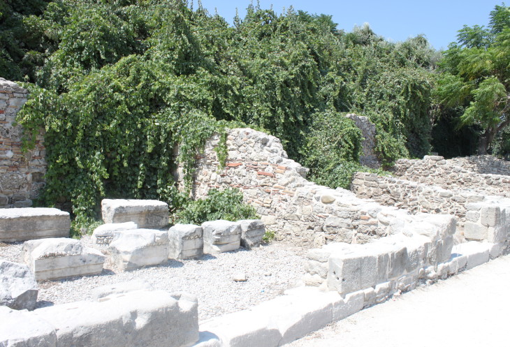 Мы опять пошли в левую сторону. Мы все ищем эту "арку" - остатки Храма Апполона!!!! НЕТУ!!!!!!! Обходим стороной амфитеатр. Там вовсю идет реконструкция, туристов нет. Может из-за того, что понедельник, может, не пускают. Фотографировать не интересно, все в строительной технике.. Выходим на местность, где видно, что это ГОРОД древности. Большая территория, у входа идет торговля сувенирами.