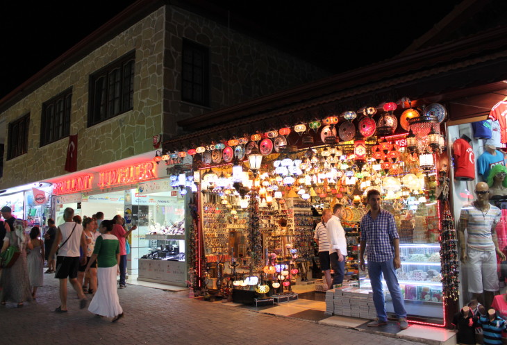 В другой стороне мы проходим сквозь рынок. Не смотря на позднее время, очень оживленная торговля всякой всячиной. Но, как в Кемере, назойливости со стороны продавцов не наблюдается.