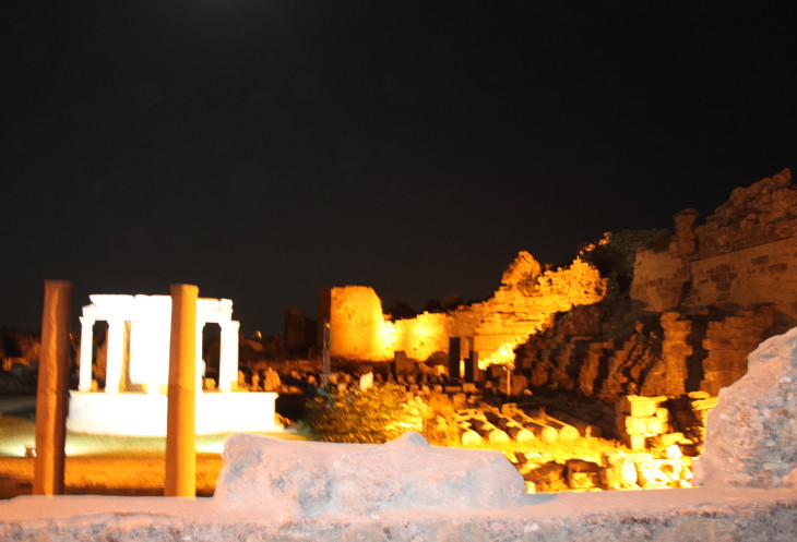 .. При дневном свете Сиде мне показался более симпатичным. Вот есть города, которые выигрывают себя в ночное время (Москва, Стамбул...), которым подсветка идет, как красавице вечернее платье. А вот Сиде при ночном освещении выгдядел таинственно и зловеще одновременно. Днем сюда пришла ИСТОРИЯ. Даже в самом городе здесь и там встречаются какие-то руины, развалины, а уж на полуострове, где сосредоточены все самые известные древности этого городка, история переплетается с современностью прочно и не разрывно. Среди развалин прочно обосновались кафешки, вдоль проезжей части стоят мраморные столбы, т.е полное впечатление единения эпох в этой чУдной местности....
