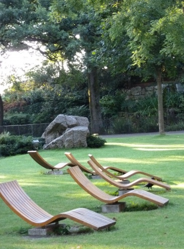 В парке Кляйне Шанце по-утреннему тихо и пустынно, деревянные шезлонги вместо скамеек и ухоженные клумбы, на которых с обычными цветами замечательно сосуществуют свекла, щавель и базилик, так созвучные посещению рынка.