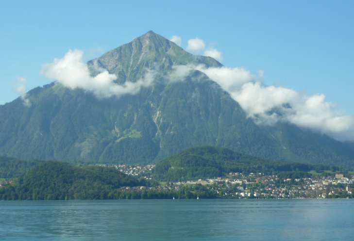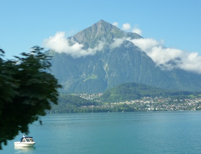 Солнышко сияет, настроение отличное. Из зеленых холмов дорога выныривает на берег озера Тун - одного из красивейших озер Швейцарии.