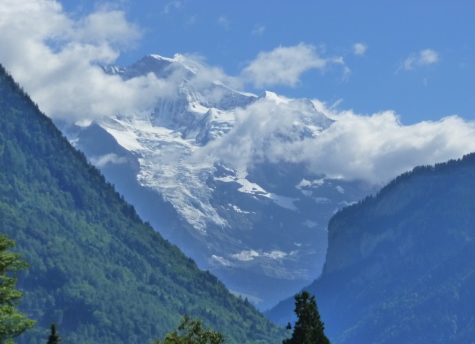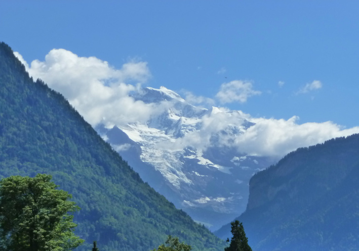 Вот и я, устроившись на лавочке в компании с отлично добравшейся до Интерлакена клубникой и местным йогуртовым мороженым, не могла оторвать глаз от прекрасной «юной девы».