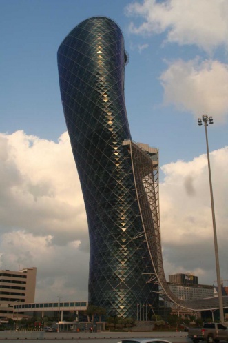 Затем Дмитрий нам показал вид открывающийся с террасы 18 этажа башни Abu-Dhabi Capital Gate by Hayatt.