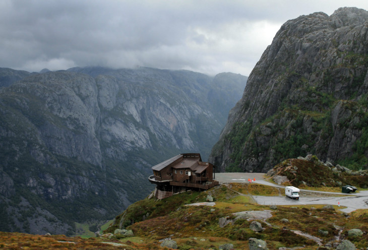 Паром наш должен отправляться завтра в 12 часов и опаздывать на него нежелательно. Есть еще один, в 14.30, но он берет лишь восемь автомобилей, в отличие от большого 12-часового. Но, ведь, и «горошину» хочется увидеть! И решили мы встать в 5.30 утра, чтобы к 6 на машине подняться обратно к месту старта и все-таки добраться до запланированного чуда норвежской природы.