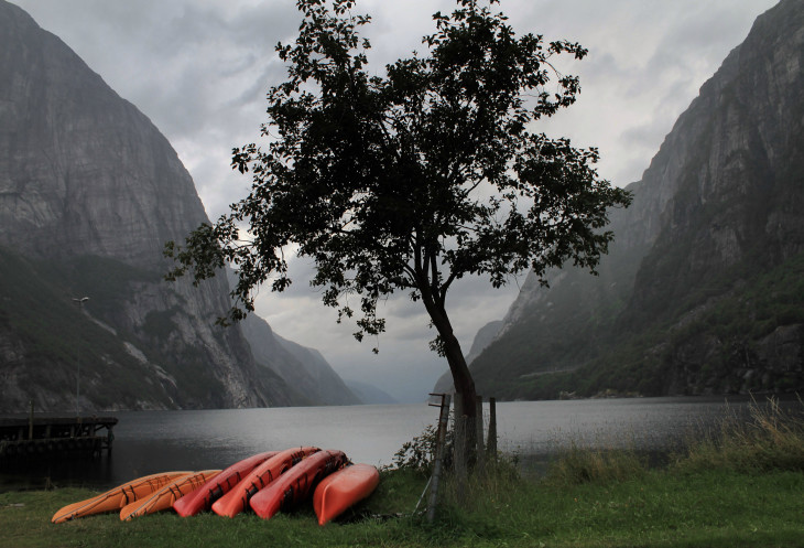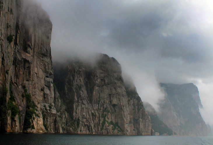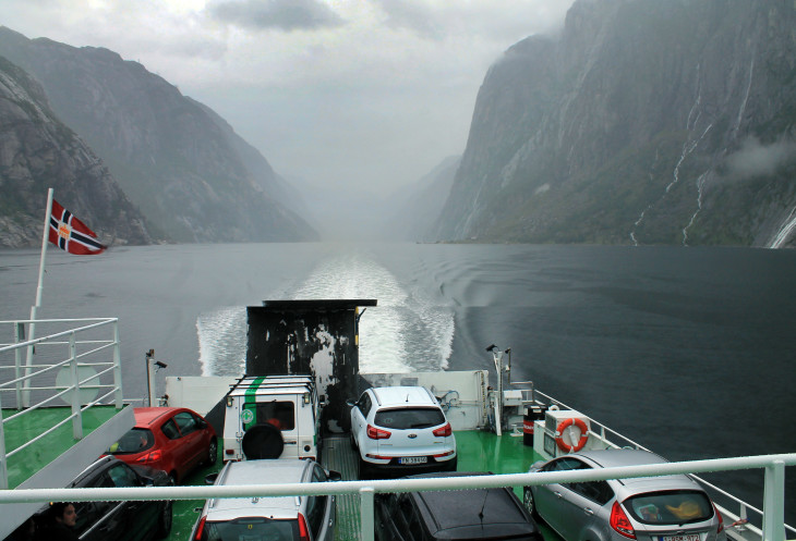 По непрекращающемуся дождю мы проехали на пароме по всему Люсефьорду, великолепному даже в непогоду (а какой же он, наверное, красивый в хорошую погоду?)!