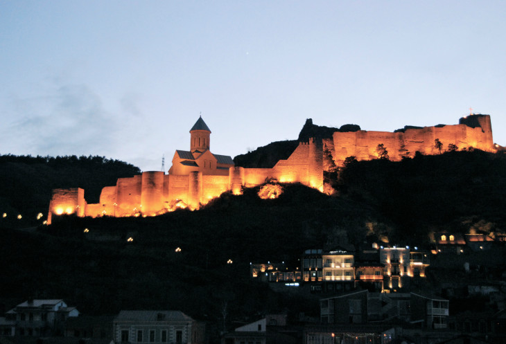 Мы решили осмотреть Тбилиси ночью с недосягаемой, почти небесной Нарикалы. Крепость была построена завоевателями Грузии, за все время существования государства только и делавшими, что пытаясь завоевать эту стратегически-важную территорию на Кавказе. Они-то и дали военной цитадели такое имя. Нарикала переводится как город ненависти. Это - самая высокая точка в Тбилиси, не считая парка Мтацминда, но в те время ни о каком комплексе на "Священной горе" не могло быть и речи: город лежал перед захватчиками как на ладони.