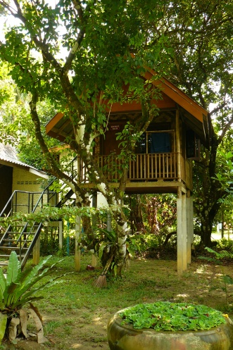 На пирсе к нам сразу же подошли с предложением аренды лодки и домика на озере. За 3400 бат мы получили в свое распоряжение лодку (с лодочником) на сутки и домик с полным пансионом (опять же на сутки). Минут через 30 мы уже были в нашем рафтхаусе. Пейзажи абсолютно не похожи на те, что мы перевидали в Таиланде за 3 недели.
