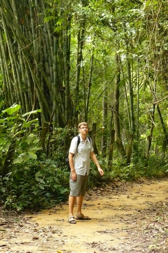 И первый же встреченный нами турист, взглянув на нашу экипировку, сказал: о май гад, вас в такой обуви закусают пиявки, будете как после оперейшн истекать кровью. Мы: а где эти страшные звери? Он: ну не скоро еще, дойдете до поворота…а потом до…а потом после плато будут полчища пиявок. Мы: не, так далеко мы не пойдем, да и не успеть уже – до заката часа 3 осталось. И бодрые отправились на поиски водопада. Ну что сказать, водопад мы так и не нашли. По схеме он должен был быть где-то действительно недалеко от входа. А вот с пиявками повстречались и естественно пострадали самые вкусные, то есть я. Оказалось, что в болото лезть совсем не обязательно, пиявки – сухопутные, нападают не заметно, глядишь, а по ноге бежит кровь. И вот пока я промывала ранку, увидела, как по дороге ко мне бежит, вот натурально бежит в припрыжку, еще одна. В общем такие мы оказались нежные, повернули обратно и решили, что галочку с джунглями мы поставили.