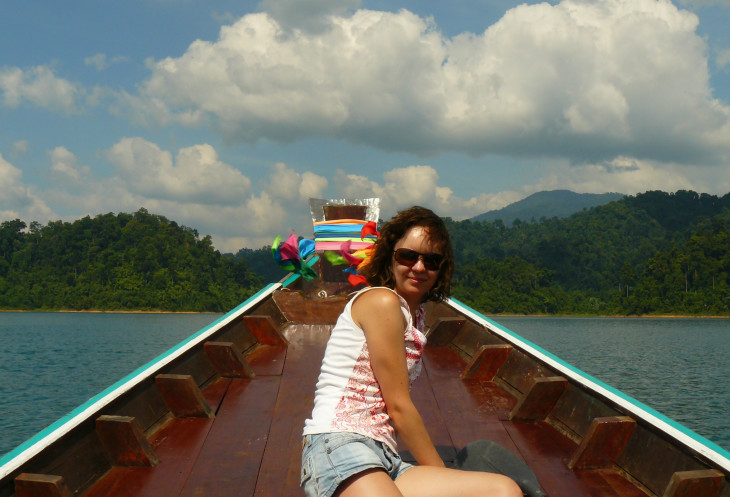 Нашими соседями была компания тайцев (у местных отдых на озере очень популярен) и группа русских туристов с Пхукета, девушка-гид которых была очень удивлена появлению русских «дикарей». И радушно пригласила присоединиться к группе на вечерней и утренней поездке по озеру. Наша аренда лодки кроме доставки к рафтхаусу также включала в себе 2 катания. Мы естественно воспользовались всеми предложениями :)