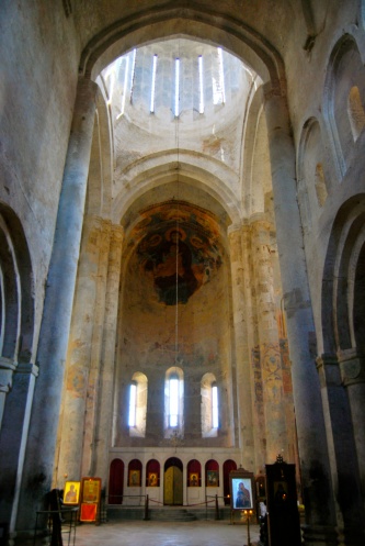Кахетия богата не только своими видными отовсюду виноградными наделами, но и памятникам религиозного значения. Грузия - это Кавказ. Кавказцы люди воинственные, несмотря на то, что очень добрые и сердечные. Церкви и иже построенные с ними монастырские комплексы служили не только местом справления христианского культа, но и являлись оборонительными крепостями, а также важными географическими точками. Они были построены таким образом, что, во-первых, с их площадок просматривалась вся долина, а, во-вторых, было возможно обмениваться условными сигналами с другими подобными форпостами.