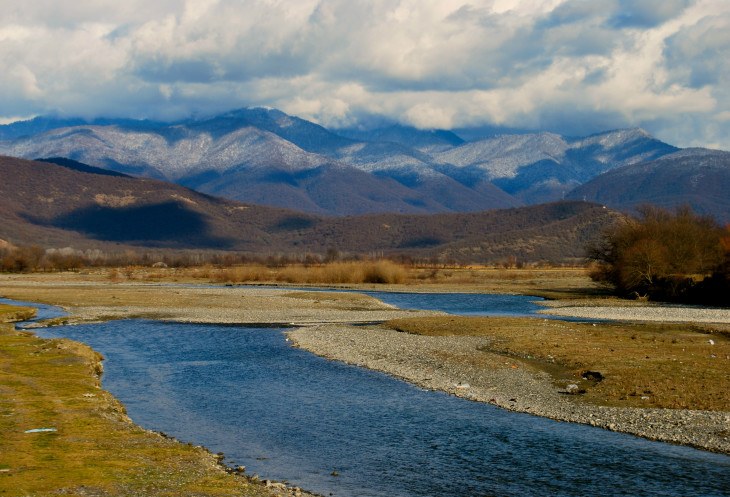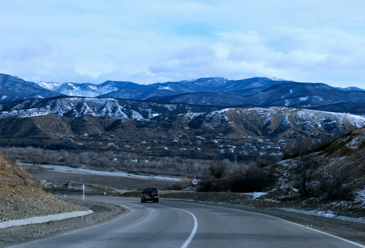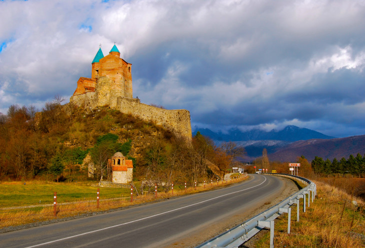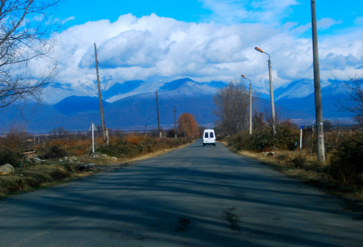 В этом году ввели новый объездной путь то Телави, общее время в пути составляет час с небольшим, зато проходит дорога по необыкновенно-причудливому пейзажа Кавкасиони (Кавказских гор), где полуобшарпанные деревенские лачужки сменяются могучими хребтами снежных великанов. Для эстетики не хватает только органических мелодий Баха, подчеркивающих масштабность этого зрелища.