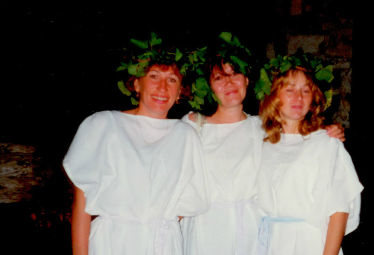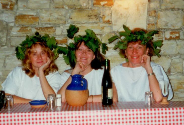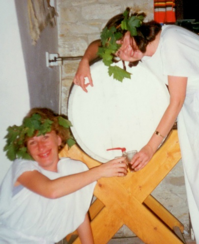 Наши с Дарьей рубахи напомнили мне о фестивале вина на Кипре, где нас переодевали в белые туники и венки из виноградных листьев.