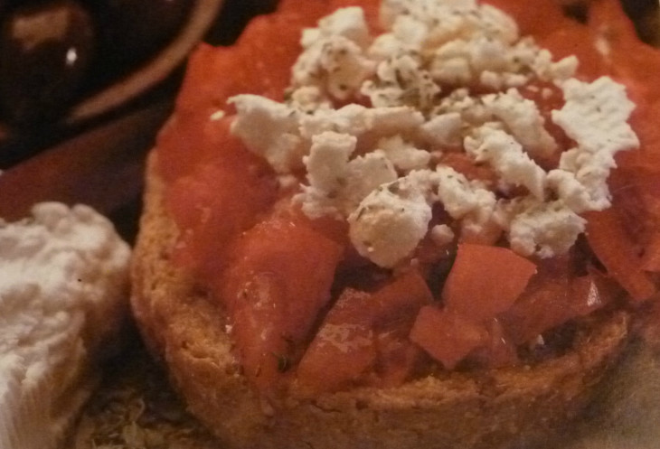 Радушная хозяюшка предложила нам горячую картошку с солью и оливковым маслом, домашний сыр, хлеб с остренькой икрой из помидор и цикудью, как лекарство от всех болезней.