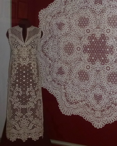Забежав поглазеть в расположенный на первом этаже магазинчик, я обратила внимание на цену воротничка (почти такой же есть и у меня) – 2600! Не скажу, что очень удивилась – значит, кропотливый труд кружевниц стали оценивать по достоинству. Еще подумала, что кружевные вещички, сохранившиеся у меня с советских времен, сейчас целое богатство, ведь кружево при должном уходе может служить долгие годы и всегда актуально.