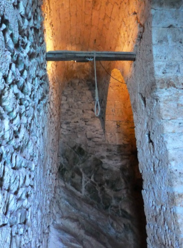 Кроме жестокого тюремного прошлого у подвалов замка было и нормальное жизненное назначение складов и арсеналов, причем достаточно обширных. Проблем с пресной водой у обитателей замка, понятно, не было, а вот провизией и оружием они запасались всерьез и надолго. Так что для туристов создан кусочек склада тех давних времен.