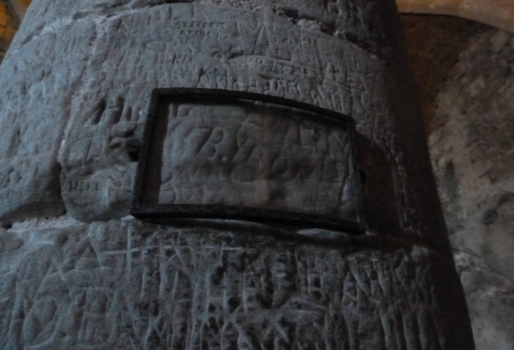 Помимо поэмы, прославившей замок, Байрон положил начало традиции оставлять здесь автографы – свой он нацарапал на колонне темницы, рядом с которой, по преданию, был прикован Бонивар (наверно, всю ночь старался, чтобы как-то преодолеть страх).