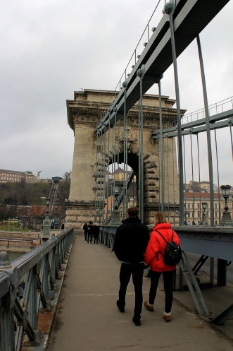 Начинаем спускаться вниз к набережной, и перед нами открываются совершенно удивительные виды на реку Дунай и Цепной мост Сечени. Даже туман не может помешать такой красоте!
