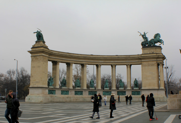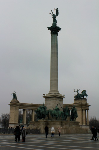 Как ни странно, на Площади Героев было очень много туристов, но всё равно здорово! В самом центре возвышается Памятник Тысячелетию – колонна высотой 36 метров, увенчанная статуей архангела Гавриила. Ангел держит в руках Святую Корону.