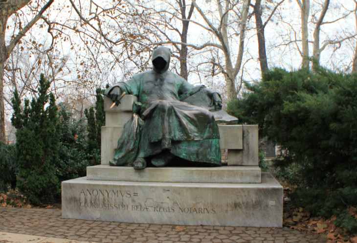 Памятник Анонимусу, нотариусу знаменитого короля Бэлы, в любое время суток «облепленный» туристами, но мне повезло: