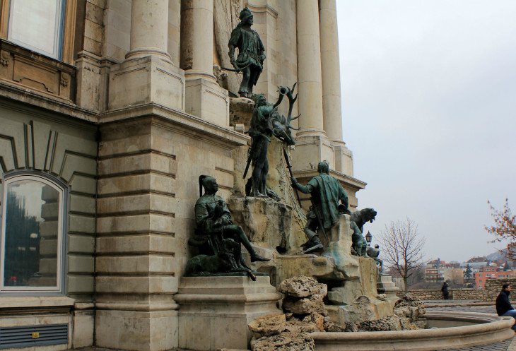 Одно из главных украшений дворца - фонтан Матьяша Корвина, изображающий сцену охоты. Матьяш Корвин, пожалуй, самый почитаемый венгерский король после Святого Иштвана. Его отцу удавалось сдерживать турецкое нашествие, и в правление Матьяша турки не смогли захватить страну. Но, к сожалению, Матьяш умер, не оставив ни наследников, ни хороших генералов. И после его смерти Венгрия пала под натиском врагов.