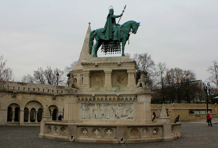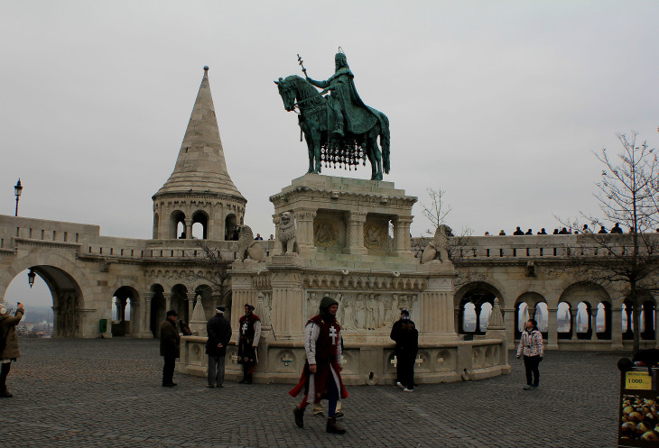 Увидели статую Святого Иштвана, которая находится перед бастионом и представляет собой постамент бронзовой конной статуи короля Иштвана, на задней части которого бородатый архитектор Алайош Штробль изобразил самого себя. Ему понадобилось десять лет, чтобы точно воспроизвести средневековое одеяние и обмундирование короля, жившего в XI веке.