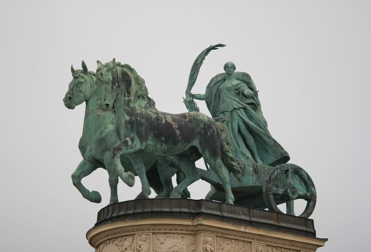 По преданию, король Иштван увидел во сне, как архангел вручает ему эту корону. За колонной расположены две полукруглые колоннады с резными статуями венгерских лидеров. Перед колонной находится мемориал, посвященный всем героям, погибшим в борьбе за независимость Венгрии.