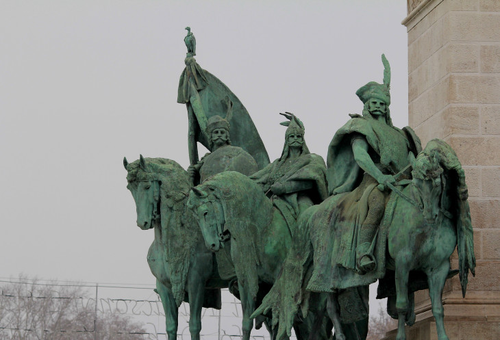 У главного входа в Дворцовый комплекс возвышается бронзовый Турул – мифическая птица. По легенде турул является предком самого Арпада и потому считается символом мадьяров.
